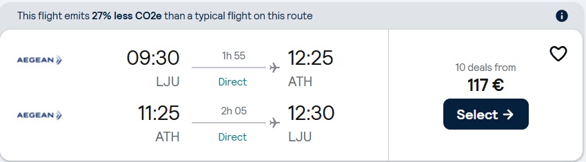Spodaj smo vam pripravili nekaj povezav, cene povratnih kart z vključeno ročno prtljago pa se pričenjajo že pri 117€, tudi v top poletni sezoni pa so cene naravnost fantastične. Možno je seveda doplačilo za oddano prtljago, dimenzije ročne prtljage pa so sledeče: 1 ročna torba do 8 kg in dimenzij do 56 cm x 45 cm x 25 cm, ki jo lahko shranite v predal nad glavo, ali 1 osebni predmet (ženska/moška torbica ali tanka torbica za prenosni računalnik), ki se mora prilegati pod sedež. Zelo ugodne so v Atenah tudi namestitve (več spodaj). Poiskali smo primer za 4 nočitve v hotelu s tremi zvezdicami in vključenim zajtrkom (skupaj s povratnim letom je cena po osebi že 250€, ob odhodu dveh oseb, z možnostjo brezplačne odpovedi; z Genius popustom, sicer malenkost dražje). Na številne otoke v Grčiji lahko z Brnika poletite tudi s čarterji (kmalu ponudba za leto 2026). Obisk Grčije priporočamo tudi v spomladanskih ter jesenskih mesecih in zimskih mesecih, če vas zanima, kako je bilo ob našem zadnjem obisku, pa kliknite na povezave na sestrski FB strani Po svetu (let z Aegean, Atene, otok Kea).