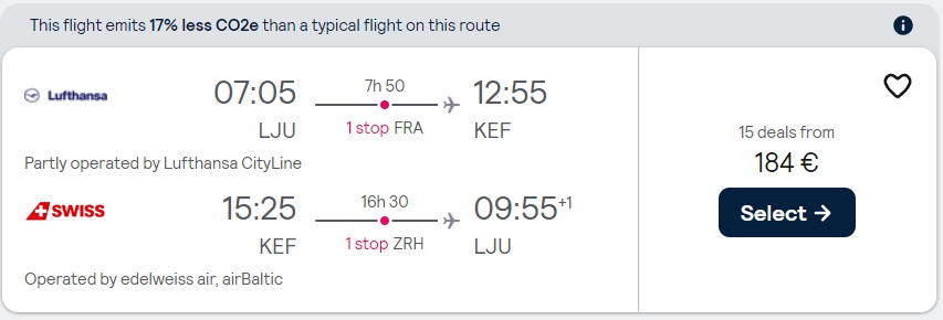 Ljubljana – Reykjavik (11.4.2024 – 20.4.2024) – 184€