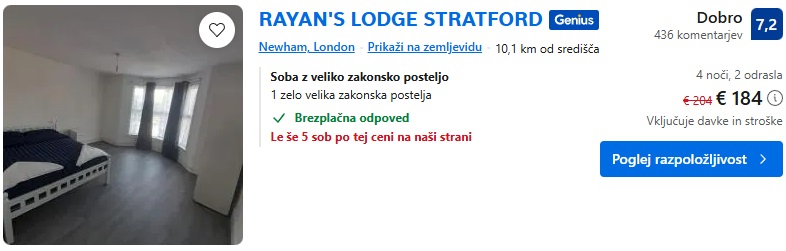 Ostale proste nastanitve (tudi še cenejše) z možnostjo brezplačne odpovedi za omenjen termin najdete TUKAJ. (v iskalniku lahko spreminjate lokacijo, datum, št. oseb, dodate vključen zajtrk … )