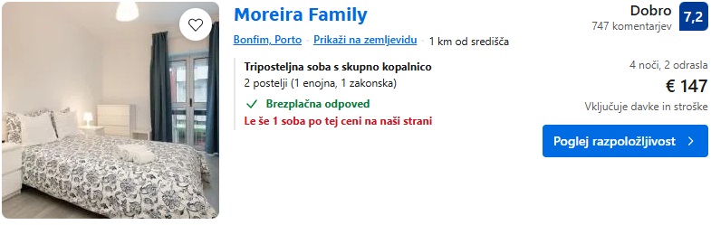 Ostale proste nastanitve (tudi še cenejše) z možnostjo brezplačne odpovedi za omenjen termin najdete TUKAJ. (v iskalniku lahko spreminjate lokacijo, datum, št. oseb, dodate vključen zajtrk … )